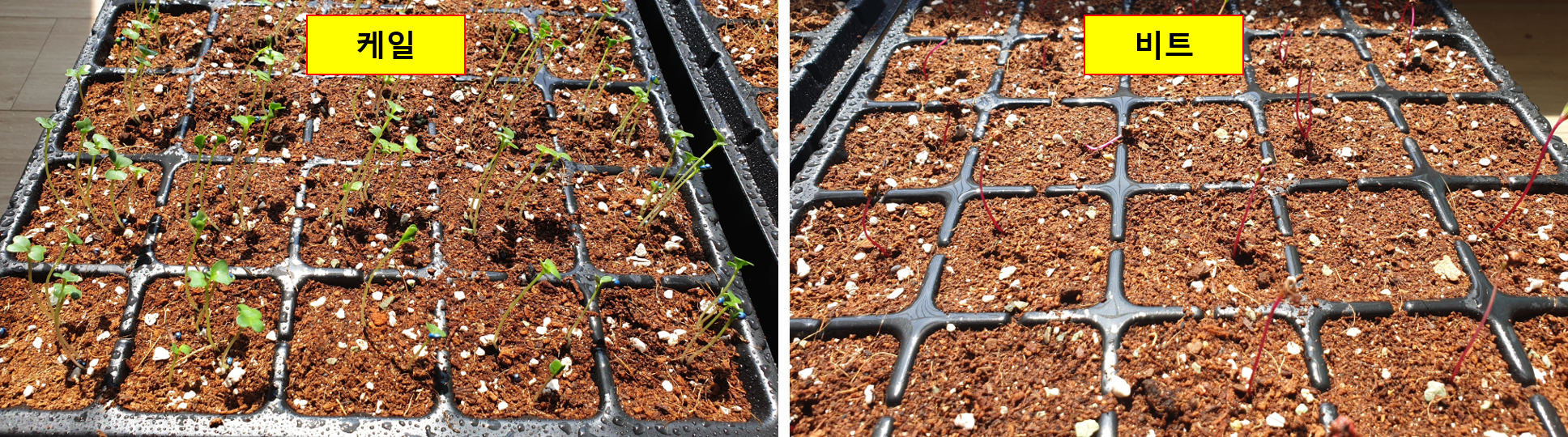 발아율은 80% 이상인 것 같고, 비트보다는 케일이 발아율도 좋고 상태도 좋은 것 같다.